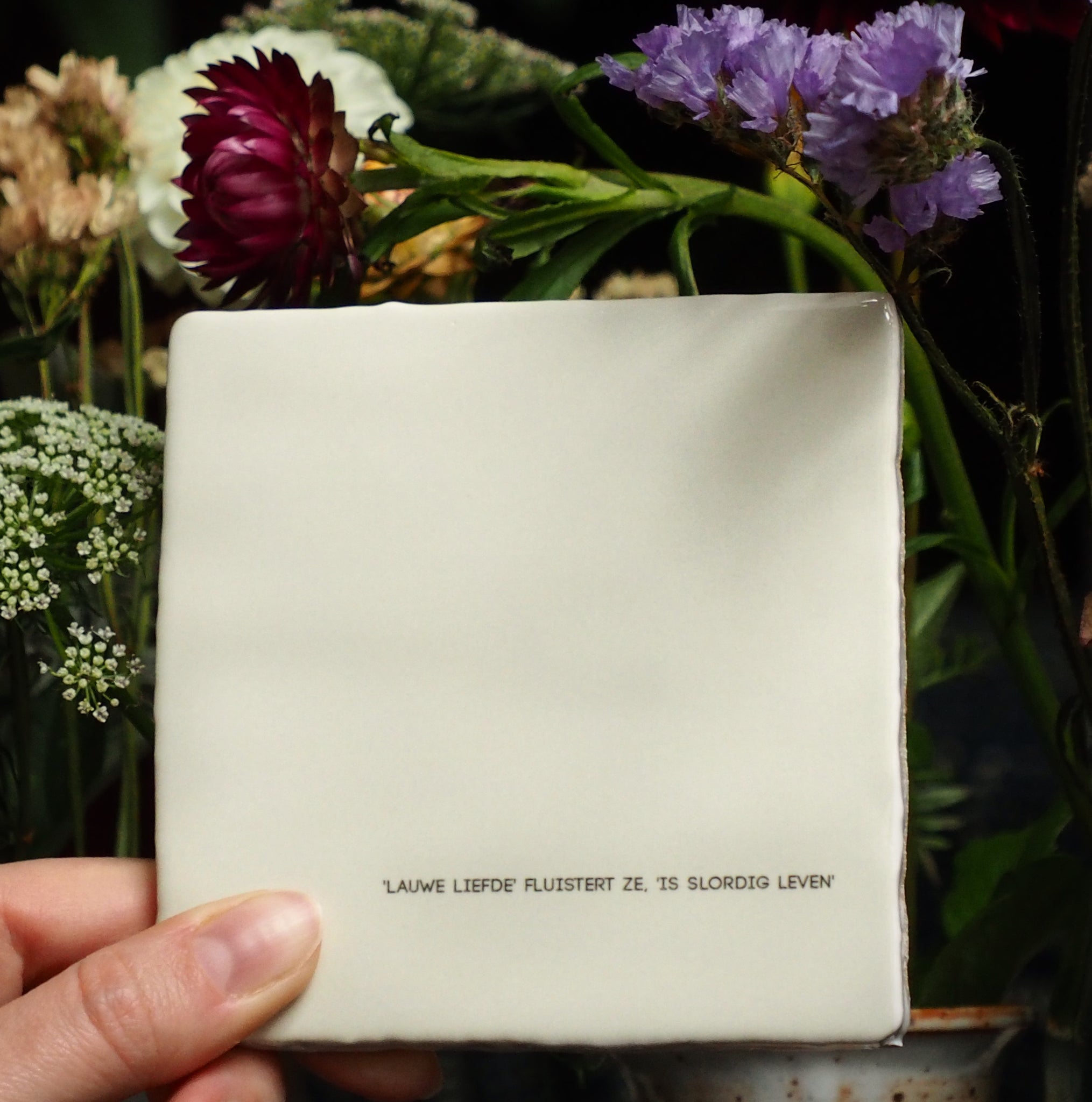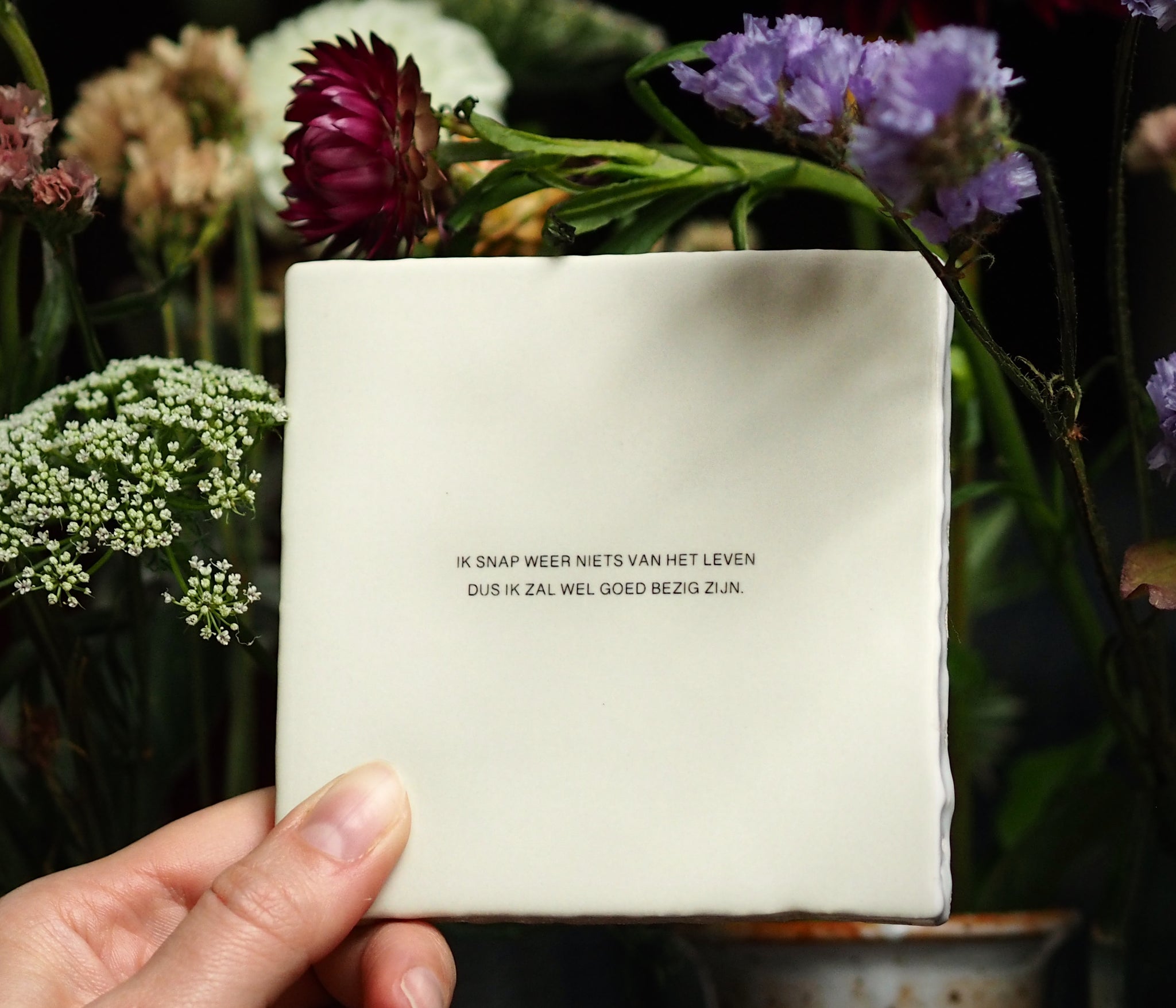 Bedrukt en ingebakken in de glazuurlaag in ons OHMR atelier in Etikhove.